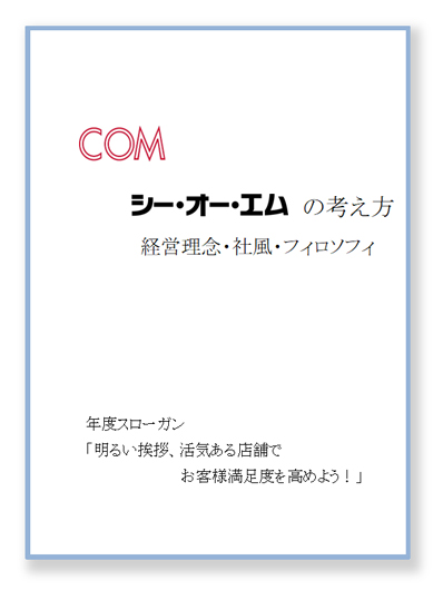 その、人に喜んでいただく為の心構えをまとめたものが、シー・オー・エムのフィロソフィ(哲学)です。