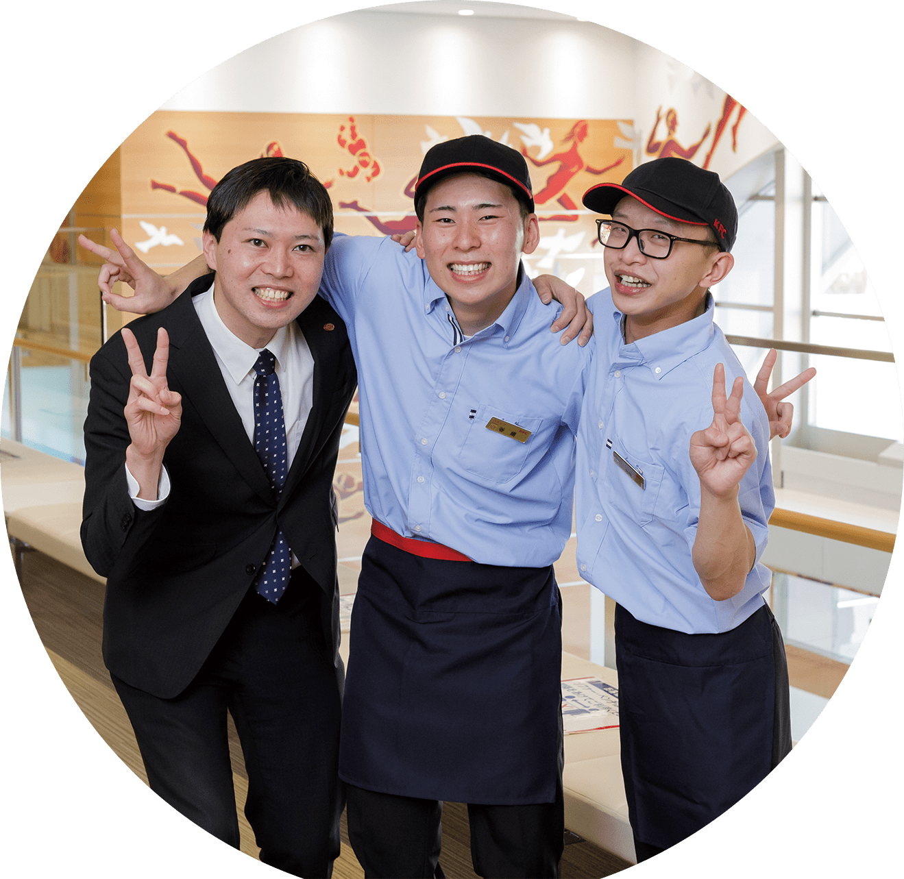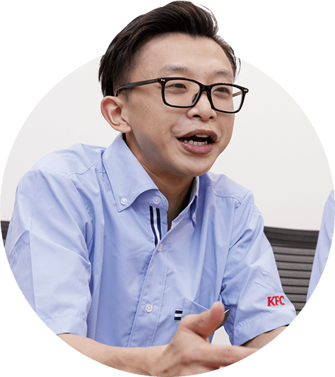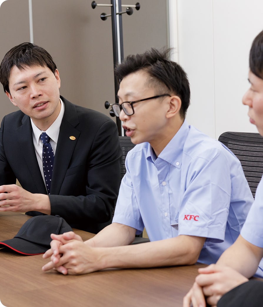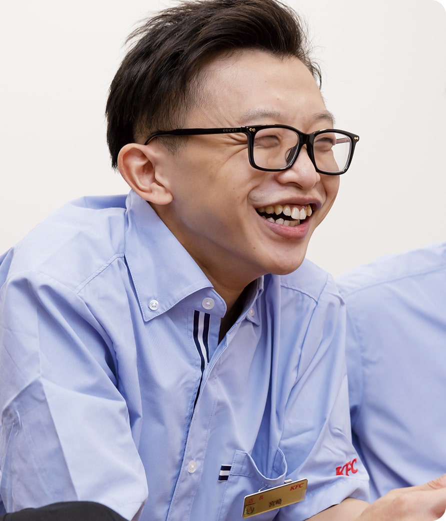 谷垣:コミュニケーションが好きな人はやりがいを得られやすい職場だと思います。お客様とお話をしたり、アルバイトスタッフのみなさんとお話をしたり、日々の仕事においてコミュニケーションスキルを発揮するシーンはたくさんあります。あとは挑戦することが好きな人も大歓迎ですね。接客の仕事、特にケンタッキー・フライド・チキンのような店舗はマニュアルが整っていて、それに沿って接客をすればいいと思うかも知れませんが、マニュアルはあくまでもベース。そこから細やかな気遣い、心配りを重ねていくことでお客様の満足度もあがります。その意味でも新しいことにチャレンジしていこうとする姿勢は大切にしてほしいですね。
