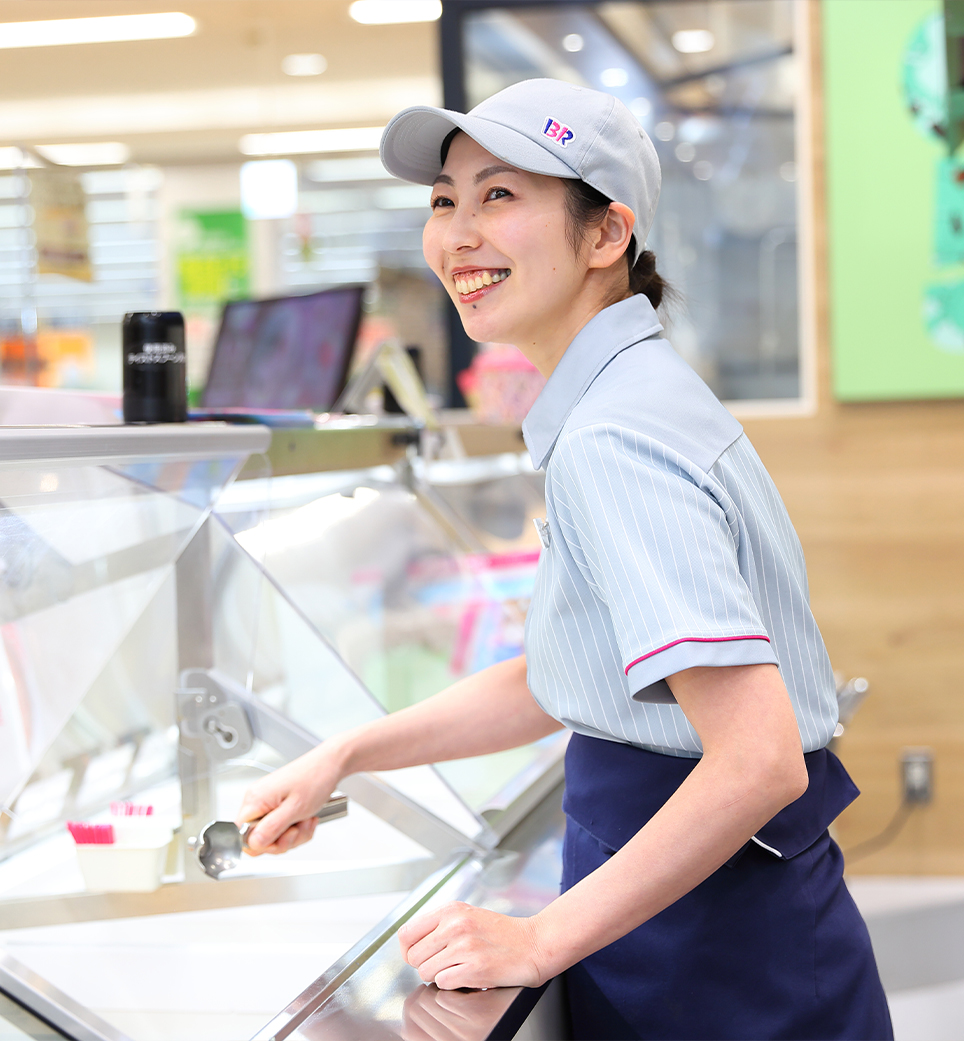 私が働いているサーティワンアイスクリームはお客様との会話が多いタイプのお店です。お孫さんに連れられて初めて買いに来られたというお客様もいらっしゃれば、新商品が発売されたタイミングで来られるお客様もいらっしゃいます。